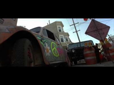 Причём машина получает вмятину уже в самом начале погони, и в дальнейшем все повреждения остаются ка кузове. Кроме одного - после наезда на столб у реальной машины должно оторваться колесо. А на киношной осталась глубокая вмятина на крыле, из под которого торчало новое колесо.