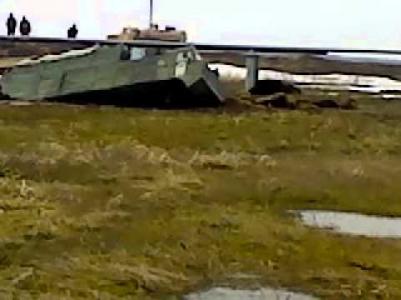 ДТ-30 надо постараться утопить, он плавает при собственной массе в 12 тонн и 45 нагрузки.