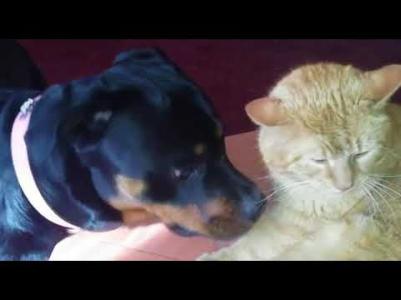 забавные все такие)тоже дома кошка с собакой есть.кошка по размерам больше.и до сих пор не привыкнет к четвероногому другу=)