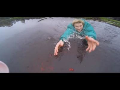 Парень кинулся на середину озера, чтобы спасти свой падающий дрон (2 фото + 1 видео)