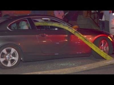 В Нью-Йорке пожарные протащили шланг сквозь салон неправильно припаркованного автомобиля. В итоге водитель получил разбитую машину и немаленький штраф.