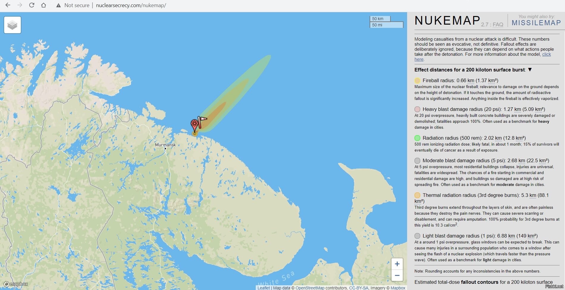 Да, ничего хорошего. Но опять таки, беда была бы локальная, а не как автор поста затирает про уничтожение Кольского полуострова и радиоактивные тучи над Северной Европой. На такое даже хрущёвская "Зе мазер оф Кузьма" в 54 мегатонны тротилового эквивалента не способна.