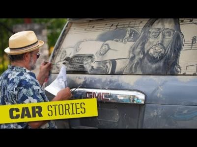 Художник из Техаса украшает пыльные стёкла машин портретами людей, наикрасивейшими пейзажами, милыми животными, картинами из кинофильмов, мультяшными героями и т.д.