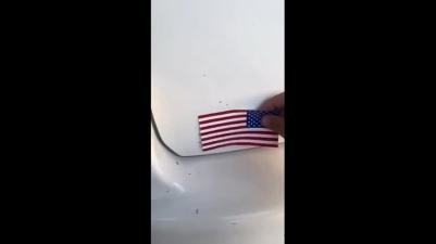 Разве звёздочки у пиндосского флага не слева? Вроде видео не зазеркалено, судя по отдираемой надписи.