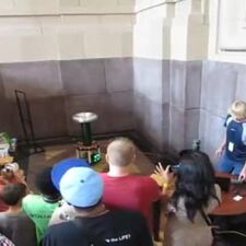 • Парень играет музыку на столбе Теслы