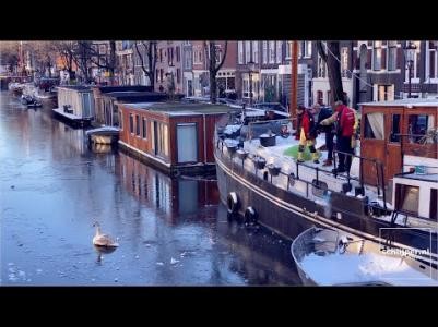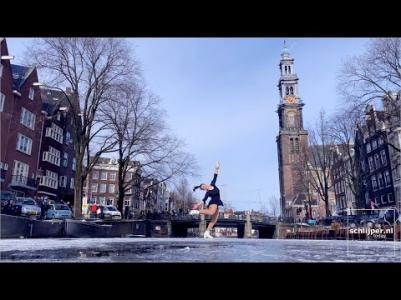 Мужчина не слишком удачно покатался на коньках по замёрзшему каналу в Амстердаме. Хрупкий лед не выдержал и полуобнажённый экстремал погрузился в холодную воду. Однако он почти не расстроился.