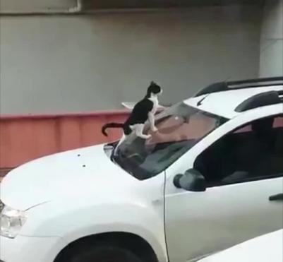 Кот из-за своей неосторожности и невнимательности оказался в салоне автомобиля шутника.