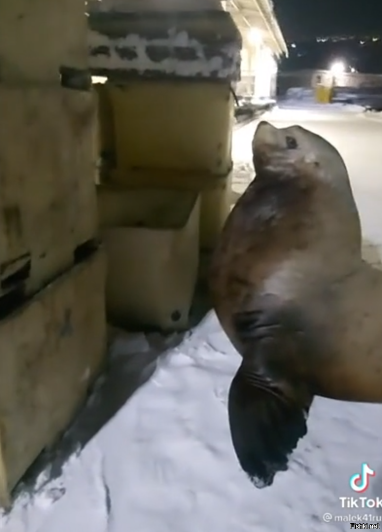 На Камчатке в гости к рабочим пришли сразу два любопытных сивуча. Голодные "Барсики" не спешили уходить и решили обследовать территорию.