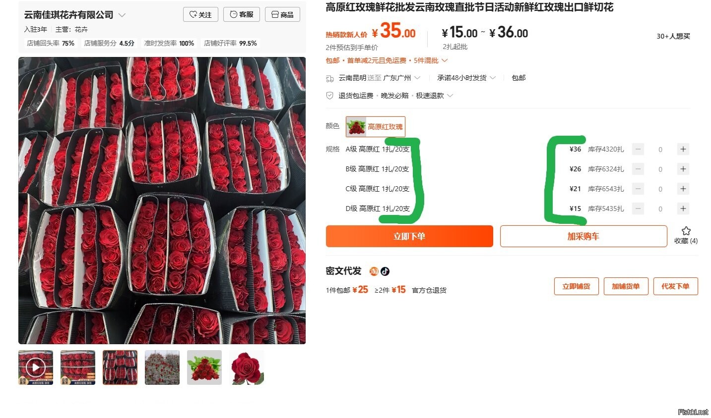 Вполне возможно, что это местные розы( в Китае). От того у них и цена такая. К нам пока приедут, пока растаможат, пока все возможные накрутки посчитают......вот и 20 т..